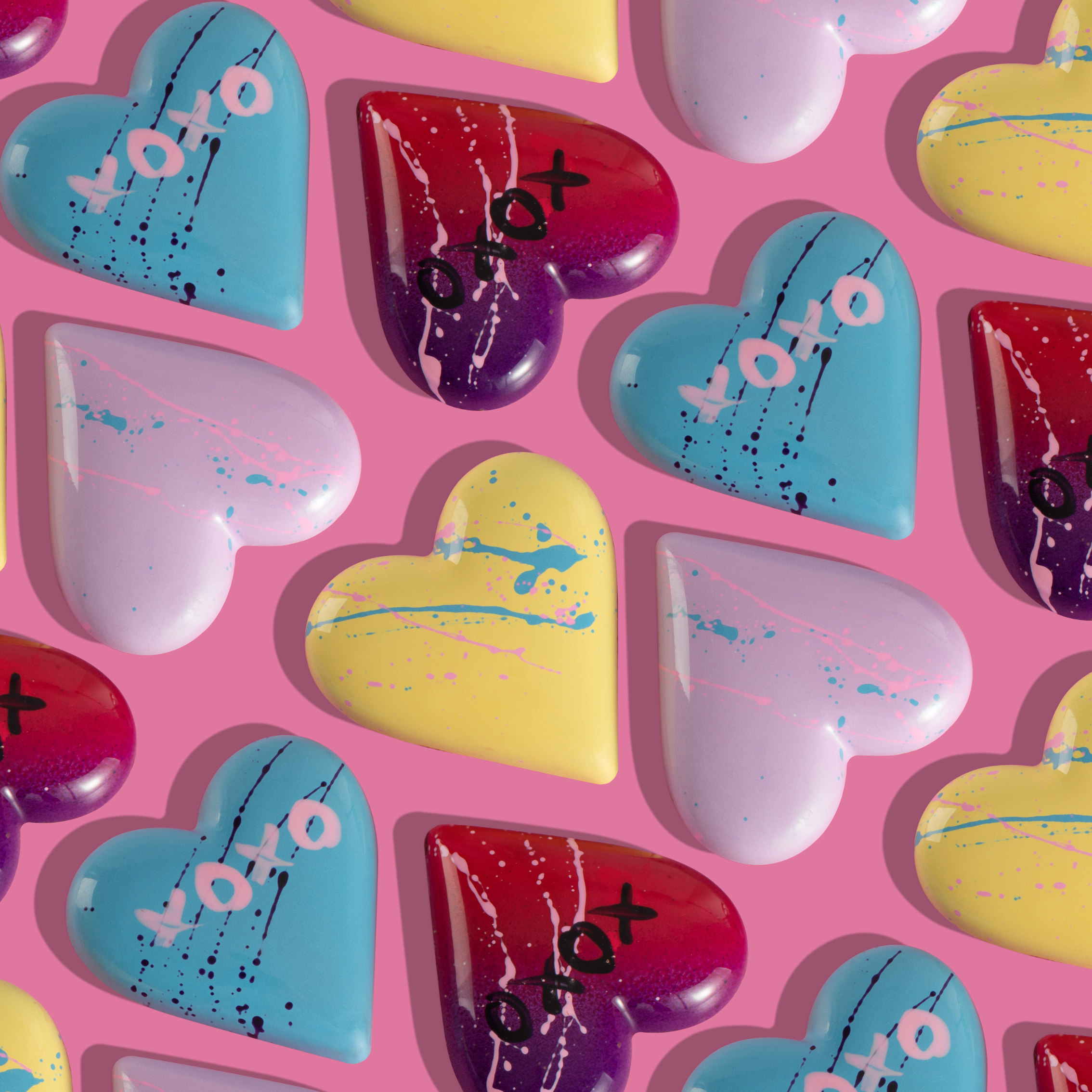 Each heart features a dual-layered interior that unfolds on the palate: